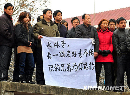 被“信义兄弟”事迹感动的来自各地素不相识的群众前来送行。图片来源:新华网 程敏 摄