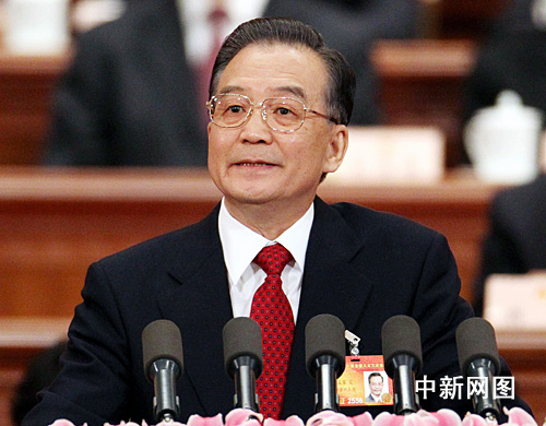 图为国务院总理温家宝作政府工作报告。中新社记者 任晨鸣 摄