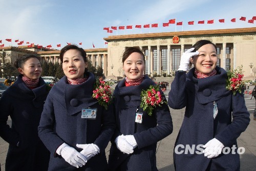 图:礼仪小姐成为“两会”一道靓丽风景(2)