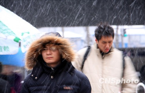 2010年3月8日清晨,人们在纷纷扬扬的雪中开始了一天的出行。从昨晚北京地区普降第二场中雪,至今日清晨仍没有停止。中新社发 车梅 摄