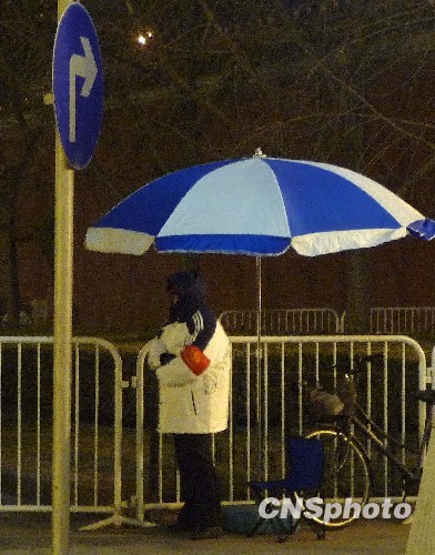 东城社区的志愿者们在寒风中站岗值班。中新社发 玉龙 摄