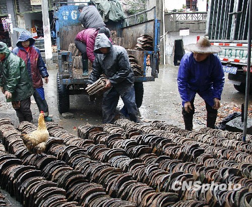 3月10日,遭受冰雹重创的千年古镇——福建邵武和平镇灾民正在搬运瓦片,修缮受损房屋。5日发生冰雹灾害后,福建紧急调运救灾瓦片,援助灾区。