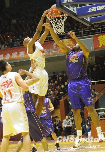 2010年3月10日,山东济南2009-2010CBA联赛第32轮在山东济南的一场比赛中,主场作战的山东黄金男篮以103-118负于上海玛吉斯男篮。中新社发 张侃 摄