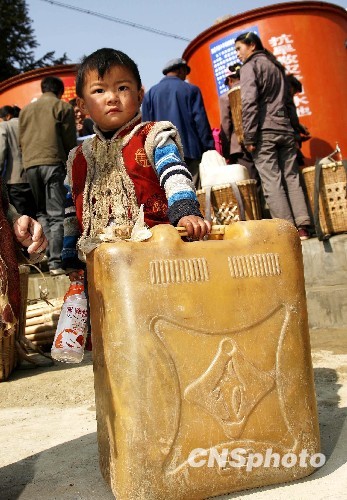 图:云南大旱 儿童携大桶排队领水(2)