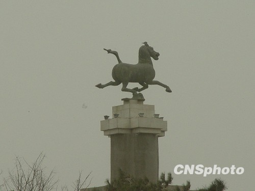 3月13日下午,一场沙尘天气袭击甘肃武威周边地区,城市的能见度迅速降低。