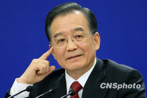 3月14日上午,十一届全国人大三次会议在北京人民大会堂落下帷幕后,国务院总理温家宝在人民大会堂金色大厅举行记者招待会回答记者提问。中新社发 任晨鸣 摄