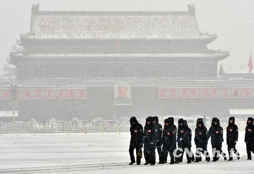 图:全国两会瑞雪中落幕(3)