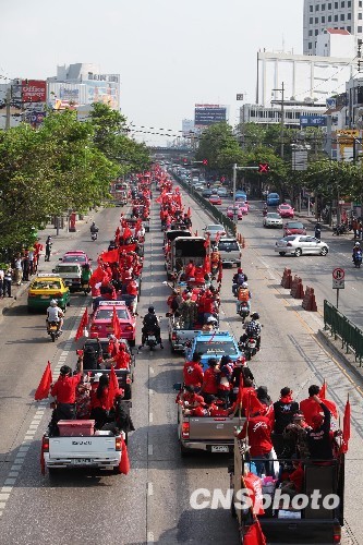 图:泰国“红衫军”前往曼谷11步兵营示威(2)