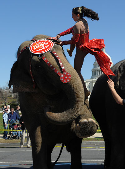 图:大象白宫前“游行”为演出季造势(2)