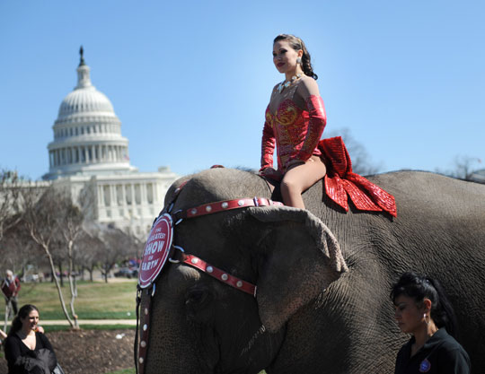 图:大象白宫前“游行”为演出季造势(3)