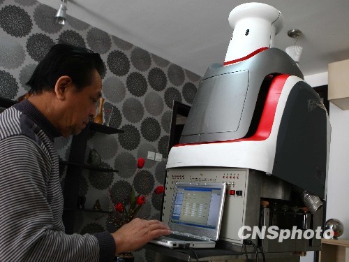 3月17日,记者前往位于北京天通苑刘长发老人的家中,探访他历时一年时间研制的机器人厨师。刘老退休前是中国科学院信息自动化系统工程专家,退休后他凭借斧、凿等简单工具和两三台电脑,“敲打”出了会做饭的机器人。机器人与电脑或手机连接,外侧绑着酱油、醋等液体调味品,胸腔里藏着盐、味精、糖等固体调料,肚子里有电磁炉,只要将菜放入机器人的肚子里,然后通过专用软件下达指令,几分钟后菜就做好了,据了解目前开发的做菜软件已经能完成几十道家常菜的制作。刘老说他现在已经联系了一家餐厅,准备将机器人厨师正式投入实际当中,也准备与更多的餐厅合作,让更多的民众品尝到机器人做的美味佳肴。