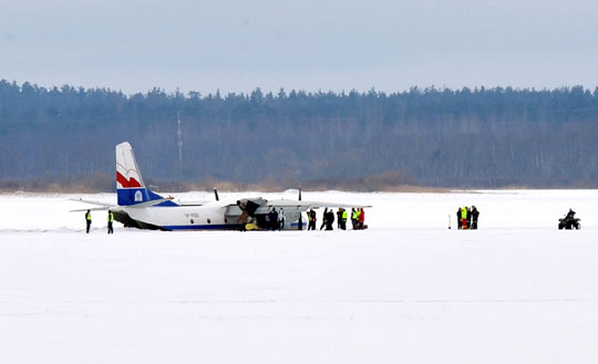 3月18日,在爱沙尼亚首都塔林机场旁边的尤莱米斯特湖的冰面上,一架波兰Exin航空公司的AN-26货机紧急降落在此。据专家初步结论,货机紧急降落的原因是由于左翼发动机损坏,机上6名人员生命安全,其中一人受轻伤。