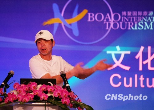 3月21日, 著名导演冯小刚在海南三亚出席2010年博鳌国际旅游论坛文化体育与旅游主题论坛并发表演讲。冯小刚在演讲中在谈及海南岛的建筑与生态环境时突然向房地产商“开炮”,戏称房地产商“没文化”,引得全场哄堂大笑。冯小刚在演讲完后也被主持人、香港凤凰卫视名嘴许戈辉戏称“冯大炮”。中新社发 尹海明 摄