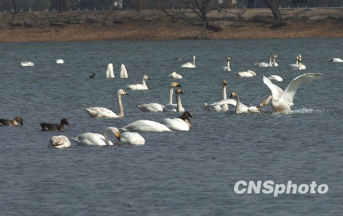 美图:上百只北归回迁天鹅颐和园戏水(5)