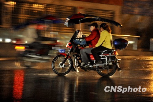图为行人和车辆在雨中行走。中新社发 吴东俊 摄