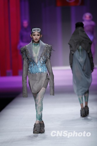 3月25日下午,法国设计师Maria Emmanuel获得“汉帛奖”第18届中国国际青年设计师时装作品大赛金奖,成为2010中国国际时装周开幕式上的亮点。中新社发 盛佳鹏 摄
