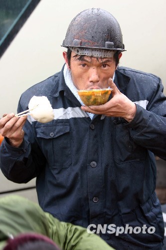 煤矿透水事故:疲惫的救援人员