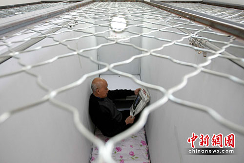 黄日新展示他的“胶囊公寓”。中新社发 富田 摄