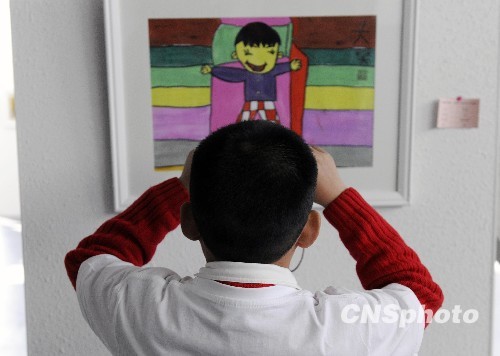 图为一位患有自闭症的孩子看展览。中新社发 刘震 摄