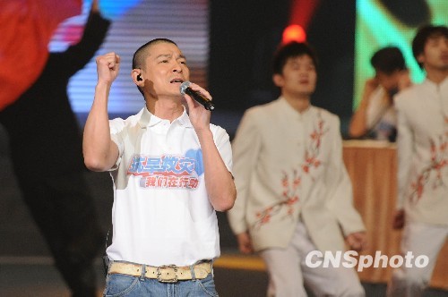 图为刘德华倾情献唱《中国人》为灾区同胞打气。中新社发 李学仕 摄
