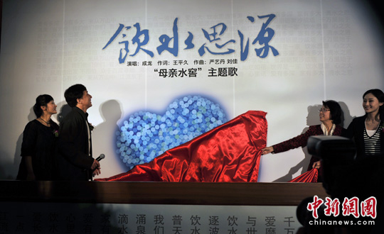 4月4日,成龙来到中国妇女发展基金会为“母亲水窖”主题歌《饮水思源》揭幕,并荣任“母亲水窖”爱心大使,王平久、林鹏荣任“母亲水窖”宣传大使。当日,由成龙演唱,王平久作词,严艺丹、刘佳作曲的抗旱歌曲《饮水思源》被选定为“母亲水窖”主题歌,继续为抗旱救灾呼唤爱心与力量。中新网记者 金硕 摄