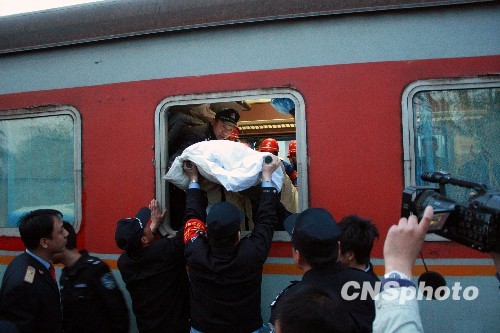 4月6日早,“3·28”透水事故60名获救工人由铁道部派专列转诊太原救治。据“3·28”透水事故救治专家组副组长、山西医科大学第一医院副院长刘强介绍,被困人员在井下顽强生存了至少179个小时,体质虚弱,出现脱水、营养不良,不排除一些病例变化、加重的可能。目前3所收治医院已经报告较重病例26例,尚无病危病例和死亡病例。医疗专家正在加强监测和分析,对较重病例逐一成立了诊疗组,采取针对性的诊疗措施。目前卫生部派来的来自全国各地的医疗专家达11位。
