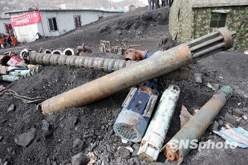 4月7日,华晋焦煤公司王家岭矿透水事故进入第十一天,为赶赶险排水进度,水泵损坏后直接更换新的,此间的排水泵损坏惊人,人们正在抓紧更换。中新社发 张云 摄