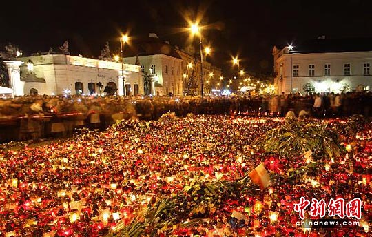 4月11日,波兰民众在首都华沙的总统府外悼念因飞机失事罹难的总统卡钦斯基。