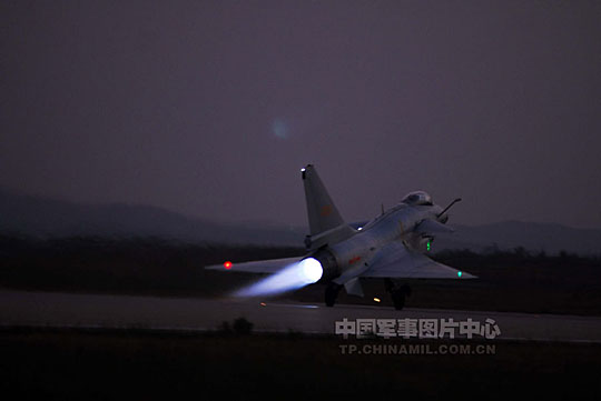 红土高原某机场寒风瑟瑟,蒙蒙夜色中,身着机务工作服的官兵往来穿梭,外场保障指挥室里灯火通明,不时传来保障分队的报告。4月10日19时,一架架战鹰呼啸着钻入夜幕,成空驻滇航空兵某团展开复杂气象夜航训练。该团按照新大纲要求,以实战为背景,多角度、多层次设置电子战场,加强对抗演练,提高官兵的判断力、识别力和抗击力。(唐传发 徐边春 摄)