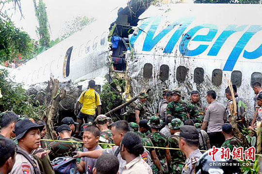 印尼官员称,一架搭载着约100人的航班于当地时间4月13日在该国机场降落时滑出跑道栽入河中,至少20人受伤。