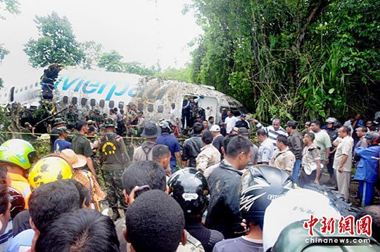 一客机在印尼机场滑出跑道 造成多人受伤(2)