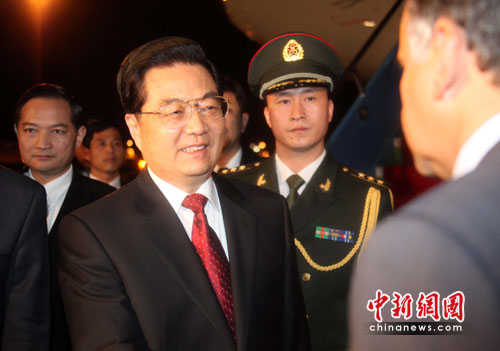 中新网4月15日电 当地时间4月14日傍晚6点多,中国国家主席胡锦涛乘专机抵达巴西首都巴西利亚,出席即将在这里举行的“金砖四国”领导人第二次正式会晤并对巴西进行第二次国事访问。