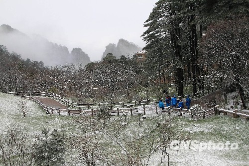 美图:白雪冰挂云海景观齐现安徽黄山(2)
