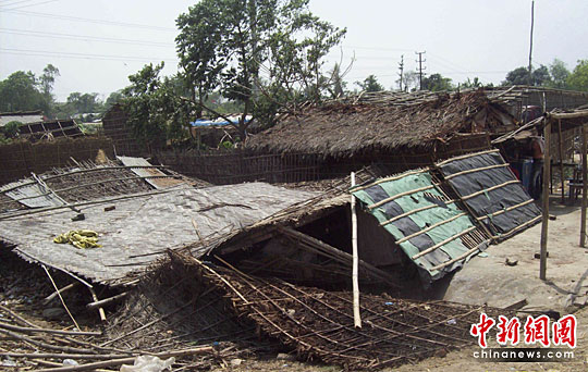 图为遭遇强风暴袭击的村庄一片狼藉。
