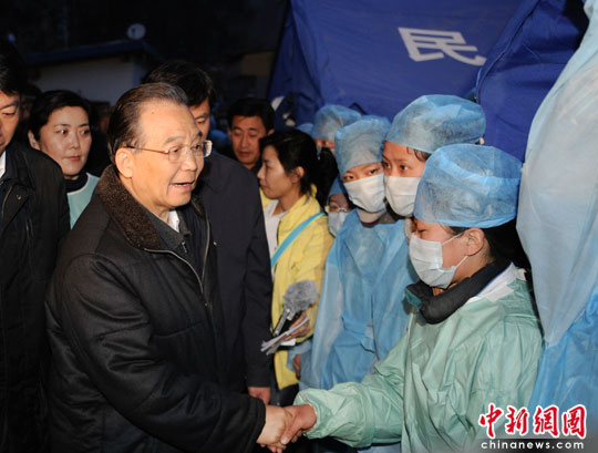 温家宝抵玉树 看望震区藏族受灾民众(2)
