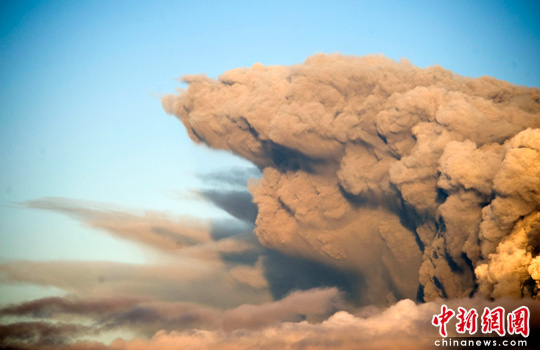 4月16日大量烟尘从冰岛埃亚菲亚德拉冰盖冰川下的一座火山升起。