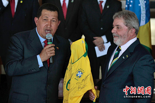 图:巴西总统卢拉向查韦斯赠球衣(3)