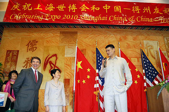 德州州长佩里讲话时告诉姚明和叶莉夫妇,我很期待着到你们的家乡上海去参观访问,并参加那里的世博会。(《美中信使报》供图/耀辉 摄影)