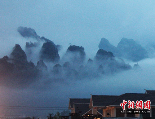 5月4日傍晚,一阵大雨过后,湖南张家界武陵源城区出现“阿凡达”仙境,薄薄的水雾飘舞在索溪,远处百丈峡青山也被白雾缠绕,似梦似幻,恍若天然的山水画,吸引了不少海内外游客和当地居民驻足观看、拍照留念。