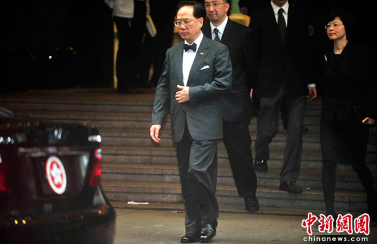 图为香港特区行政长官曾荫权到灵堂致祭,表达敬意。中新社发 邓庆乐 摄