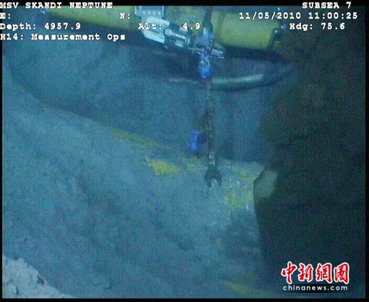 组图:美钻井平台事故海底漏油照曝光