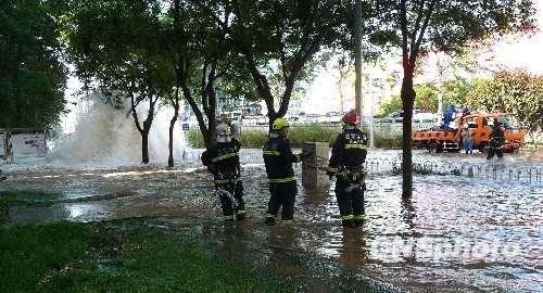 北京东三环附近水管爆裂 路面一片“汪洋”(2)