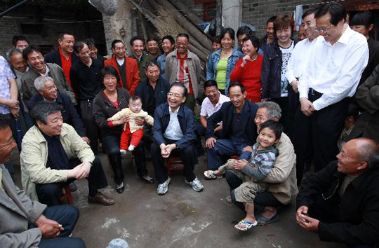 6月9日傍晚,温家宝在长葛市石象乡坡李王村与村民们座谈。庞兴雷摄