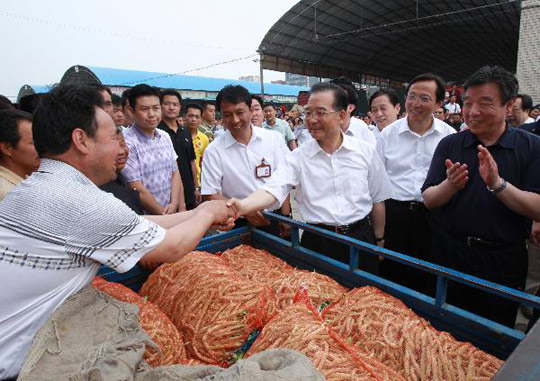 6月10日,温家宝在郑州市农产品物流配送中心详细了解蔬菜价格与供应情况。庞兴雷摄