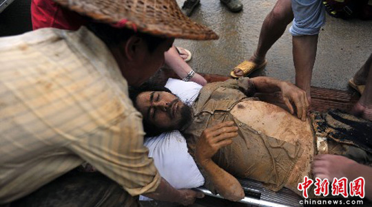 6月14日,福建南平西芹镇村民张寿松,因为泥石流冲塌房屋被埋房里4个小时被救出。 这二日延平区降特大暴雨,降雨集中,短历时强降雨导致延平、顺昌等地多处出现山体滑坡、泥石流等地质灾害。中新社发 柳涛 摄