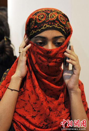 6月15日,在巴基斯坦东北部城市拉瓦尔品第,一名巴基斯坦女学生在乘机回国后与亲人通电话。