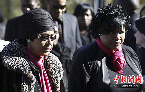 图为曼德拉的前妻温妮出席重孙女的葬礼。