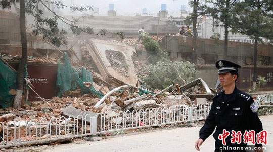 图:昆明闹市区一在拆酒店发生倒塌事故(2)
