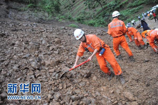 6月28日,部队官兵赶赴事故现场进行救援,沿途的山体也已开始发生滑坡。当日14时左右,贵州省关岭县岗乌镇大寨村因连续强降雨引发山体滑坡,造成该村两个村民组38户107人被掩埋。目前,邻近村民已疏散至安全地点。