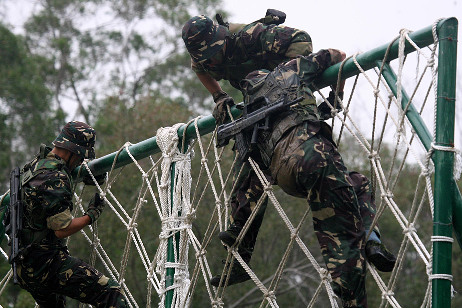 本网记者近日在中国人民解放军驻香港部队石岗营区训练场,观看了驻港部队侦察兵实弹突击演练。身穿迷彩服、面涂油彩的战士们冒着“枪林弹雨”,背负枪械攻克障碍,其间穿越火障、跨越滑桥、潜滩暗渡,更肩扛一百公斤的圆木进行二百米极限冲刺。这些障碍项目是对战士意志、体力与心理的多重磨练,连续通过二十一个项目,更是挑战体能的极限。郑祚声 摄